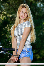 Kendell kendell rides her bike outdoors as she bares her slender body and small pussy.